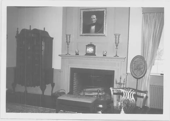 While we do not have a record of the specific furniture that was in the house during the Hopkins family ownership, we do know a few things about the furniture from the time period when Stephen and Thelma Duckett owned the property beginning with their purchase in 1941. The pictures below show some furniture in place in the early 1950's. The first picture is of the fireplace area in the newly built west wing of the house (1952). You can see what is called a Highboy. This dresser-type furniture dates to around 1750. The Duckett's piece may have been an antique or a reproduction. I have one in my family room. They are made from beautiful woods like mahogany or cherry. They often included bonnet or pediment tops with gooseneck molding, brass handles, fluted columns on the edges, carved fans and finials. Many of the highboys made in Maryland feature carved shells that represent the beach and bay life that can be found here.